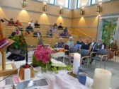 Im Anschluss feierten alle gemeinsam im EmK-Gemeinderaum und im Eingangsbereich des Hauses für Senioren mit einem großzügigen Buffet.