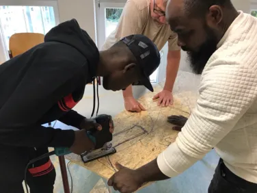 Als nächstes folgt das Ausschneiden der einzelnen Buchstaben mit der Stichsäge.