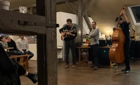 Dann folgte ein gemeinsames Abendessen und als krönender Abschluss das sehr persönliche Konzert oder die wunderschöne Darbietung des Moritz-Weiß-Kletzmer Trios.