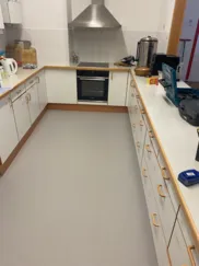 Ebenso wurden die Böden im anschließenden Büroraum, in der Küche im ersten Stock und im Lift erneuert. Außerdem wurden bereits vor Ostern die Böden im Eingangsbereich grundgereinigt und neu eingelassen.