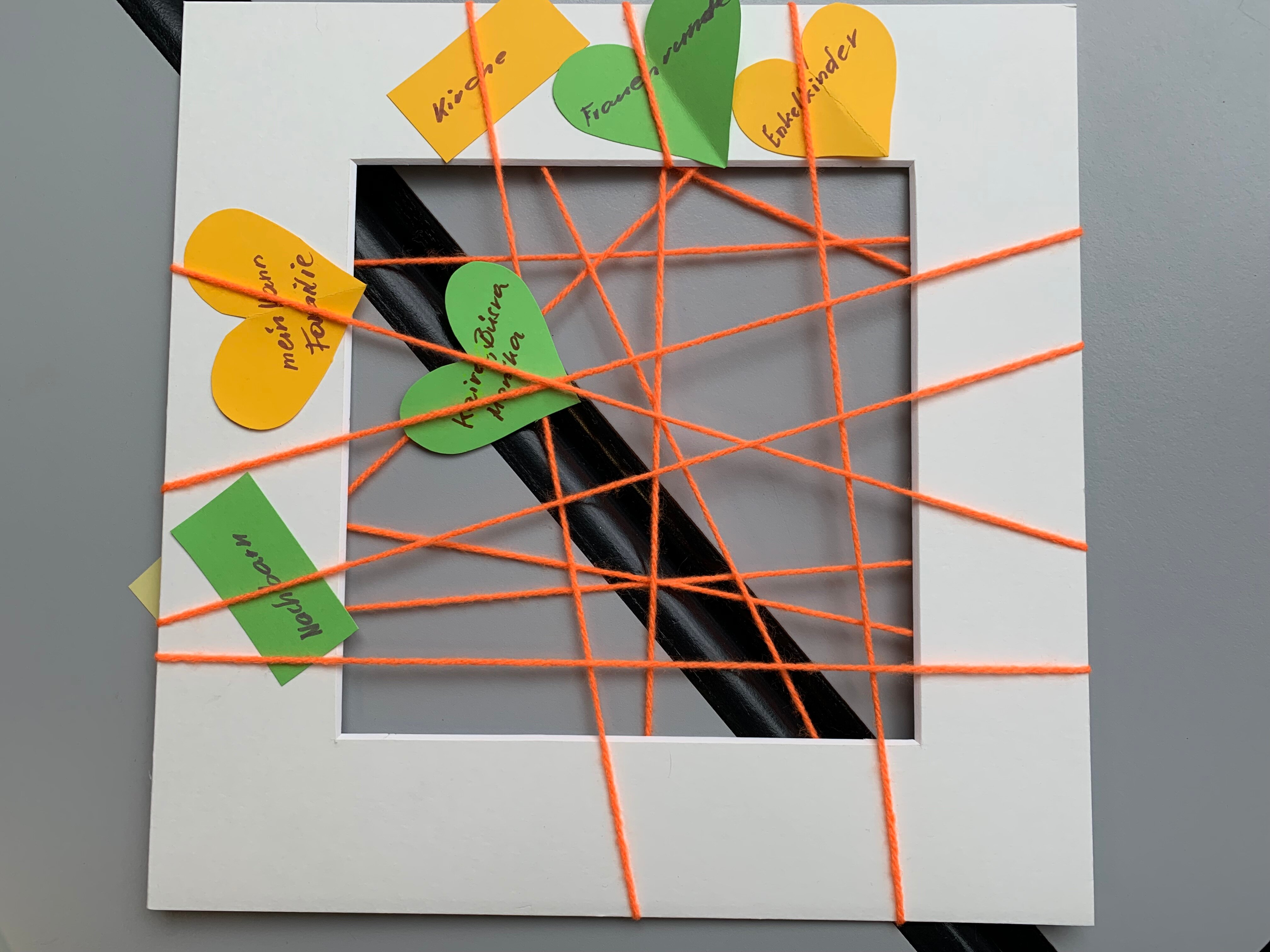 Am Nachmittag haben die Frauen ihr Wirken in Werke umgesetzt. Mit Karton, Wolle und Papier wurde das in Gesprächen Entfaltete festgehalten, zur Erinnerung und Stärkung für Zeiten der Mutlosigkeit, wenn man gerade einmal nicht das Gefühl hat, etwas bewirken zu können.