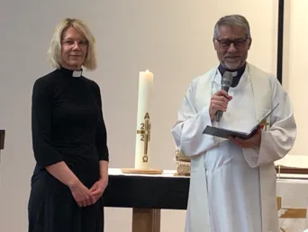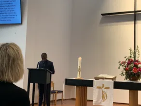Den Gottesdienst leiteten Pastor John Calhoun (ESUMC) und die neue Pastorin der EmK Wien-Fünfhaus, Antje Klein. Sie wurde für ihren Dienst in der EmK Österreich gesegnet.