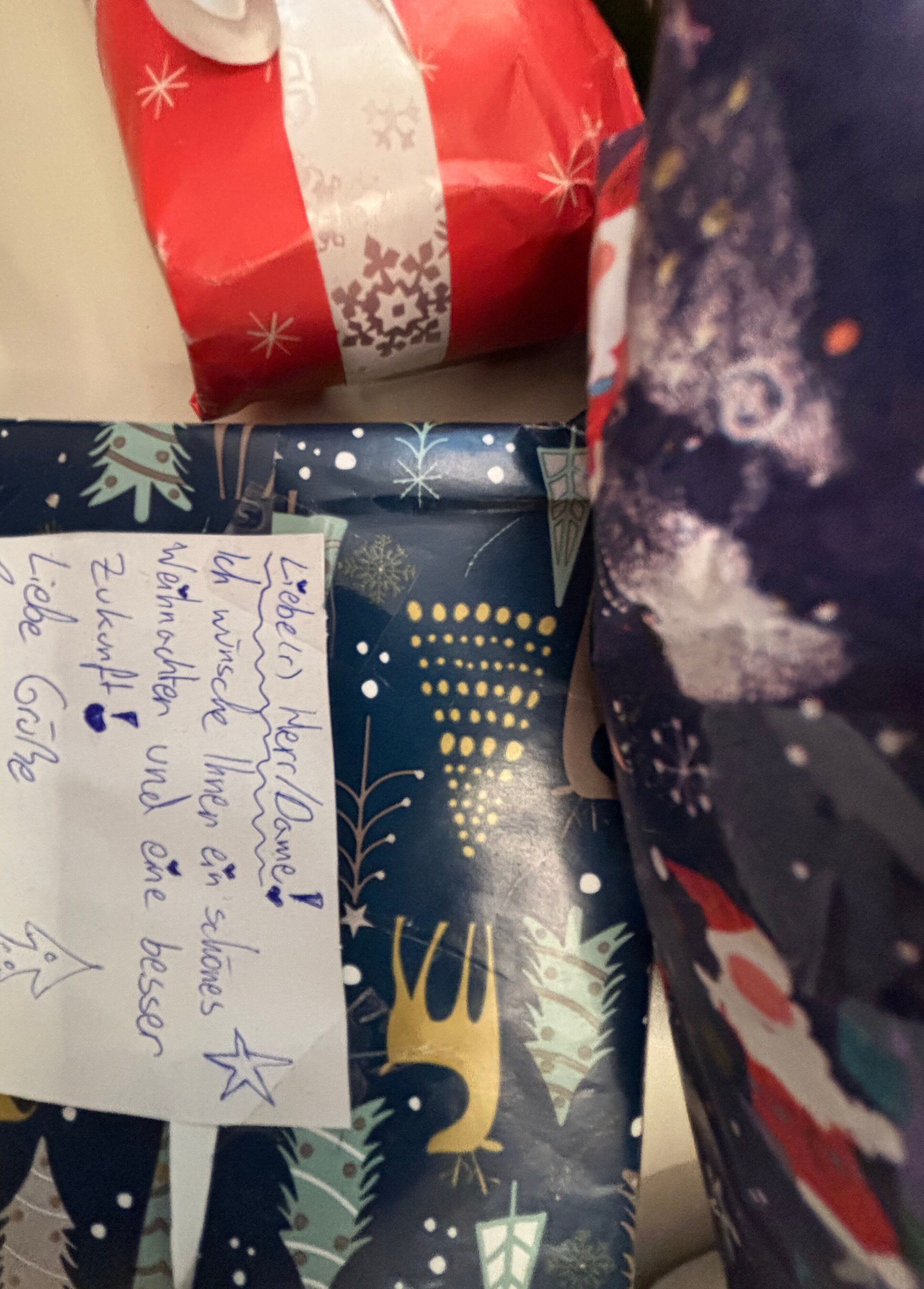 149 Gäste haben wir an diesem Tag begrüßen dürfen. Wie gut, dass gleichzeitig eine große Gruppe an Mitarbeiter*innen bereitstand (danke an alle, die dabei waren und diesen Tag so möglich gemacht haben!). Als Weihnachtsfestessen gab es in diesem Jahr Tafelspitz, großzügig gespendet vom dm-Drogeriemarkt. Die Geschenke, die die Schülerinnen und Schüler vom Diefenbachgymnasium und vom Himmelhof mitgebracht hatten, wurden ebenso überreicht wie etliche Sackerln mit Weihnachtskeksen, die von der ESUMC liebevoll verpackt worden waren.