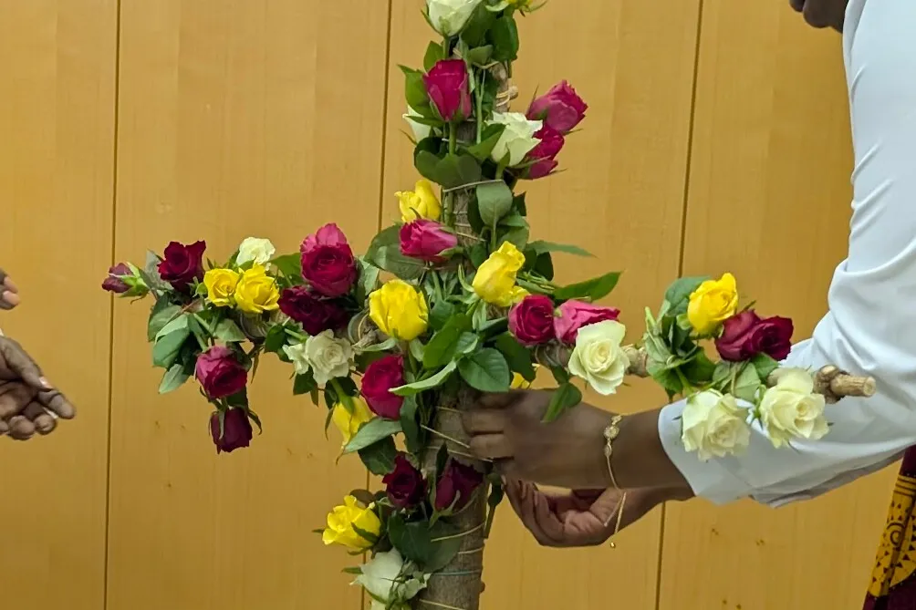 In unserem Ostergottesdienst möchte ich in diesem Jahr eine Tradition aufnehmen, die ich in unserer Englischsprachigen Gemeinde kennen gelernt habe. Dabei wird ein Holzkreuz, das an den Tod Jesu am Karfreitag erinnert, mit bunten Blumen geschmückt. Aus dem Kreuz des Todes wird so ein buntes, blühendes Zeichen für die Auferstehung!