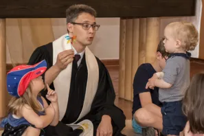 Jeder Gottesdienst beginnt mit einer Geschichte, die in der Regel nicht nur die Kinder zum Nachdenken anregt. Danach gibt es für sie einen Kindergottesdienst, in denen sie sich auf altersgerechte Weise mit biblischen Geschichten und Fragen des Glaubens auseinandersetzen können. Für die Kleinsten gibt es einen Krabbelraum. Eltern können sich dort mit ihren Kindern aufhalten und dem Gottesdienst zuhören, der mit Lautsprechern übertragen wird.