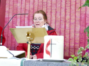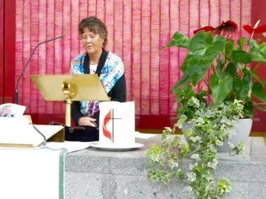 Zu jedem Missionsgottesdienst gehört eine freudige Kollekte für die Arbeit der Missionsprojekte. Frauennetzwerk-Vorsitzende und Leiterin der Frauengruppe der EmK Salzburg, Margit Wallner, stellte die Projekte vor, die wir in diesem Jahr im Kongo und in Albanien und Nordmazedonien unterstützen.