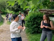 Mit der Straßenbahn Linie 1 zur Haltestelle Waldhof und dann mit einem entspannten Spaziergang einmal über den Hügel ins Stiftingtal zu Familie Petau.
