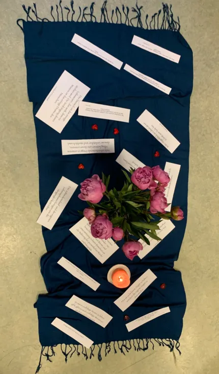 Neben theoretischen Vorträgen lud Yvonne die Gruppe immer wieder in einen Sesselkreis zur persönlichen Reflexion und Austausch ein, sowie zu den Andachten, die das Thema umrahmten. Ihre liebevoll gestalteten "Mitten" haben zur angenehmen Atmosphäre beigetragen. Das Kursprogramm konnte mit allen Sinnen erlebt werden.