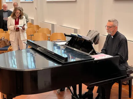 Prof. Dr. Martin Fischer, Leiter des Referats II/4/c, Angelegenheiten der Evangelischen Kirche, sprach ein ermutigendes Grußwort: Es braucht ein "sowohl - als auch", im zwischenmenschlichen Bereich. Hierfür diente ihm die Musik als Beispiel, da auch sehr unterschiedliche Musik ihre Liebhaber*innen findet.