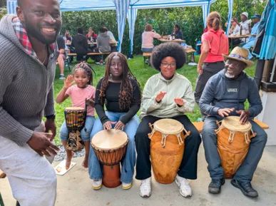 In the early afternoon, we returned to Andrew's garden for a feast of salads, meats and vegetables grilled over the coals, and desserts and drinks that lasted well into the afternoon. Our African Singers and Drummers led us in singing and dancing, and our children played joyfully. And then as the sun began to fade, we brought the day to close, and returned to Vienna in a spirit of thanksgiving.