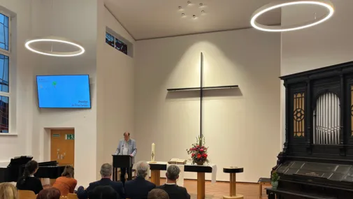 Superintendent Stefan Schröckenfuchs eröffnete den neu renovierten Kirchensaal der EmK in der Sechshauserstraße.