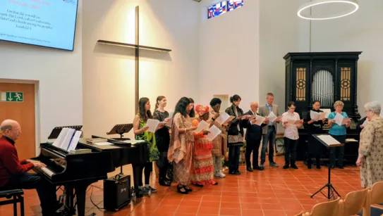 We give thanks to God for our celebration of the harvest in our newly renovated sanctuary. Here are a few scenes from our worship service and festive meal on Sunday 19 October. Thank you to David Lee for sharing these photos, and thank you all for your participation in our day of thanksgiving.