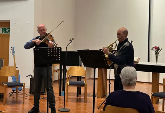 Hosted by ESUMC musical director Marilyn Brandl, the evening featured musical performances by our Chancel Choir, a guitar trio, and a string duet; singing accompanied by the piano and guitar; reading of poetry and humorous anecdotes; and a general spirit of joy and good fellowship.