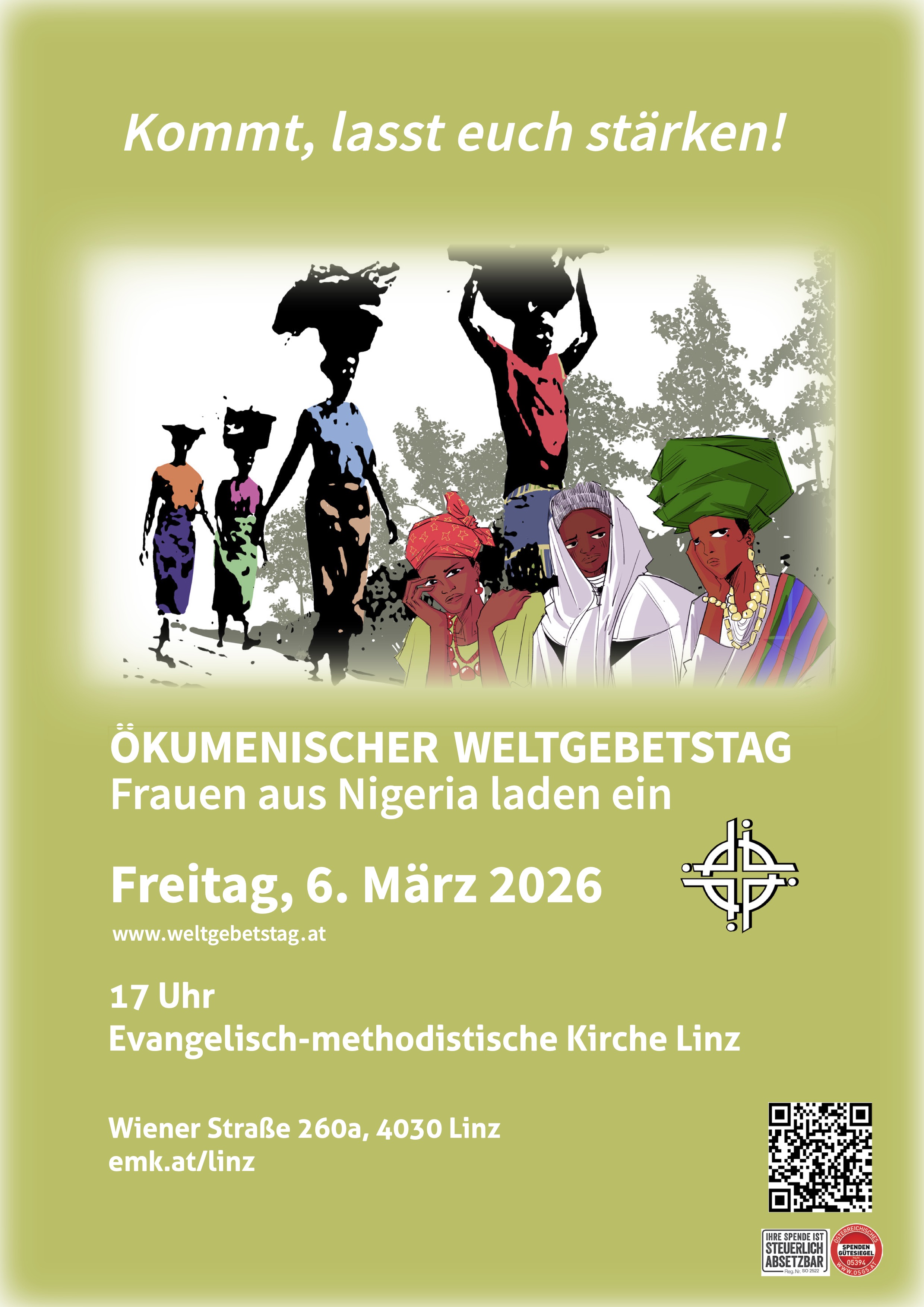 Der Weltgebetstag der Frauen ist eine der erfolgreichsten ökumenischen Bewegungen. Er wurde 1887 in Amerika ins Leben gerufen. Methodistische Frauen initiierten die Feier des Weltgebetstages in Österreich. Jedes Jahr bereiten Frauen aus einem anderen Land die Feier vor. Gruppen vor Ort organisieren am ersten Freitag im März ökumenische Gottesdienste.