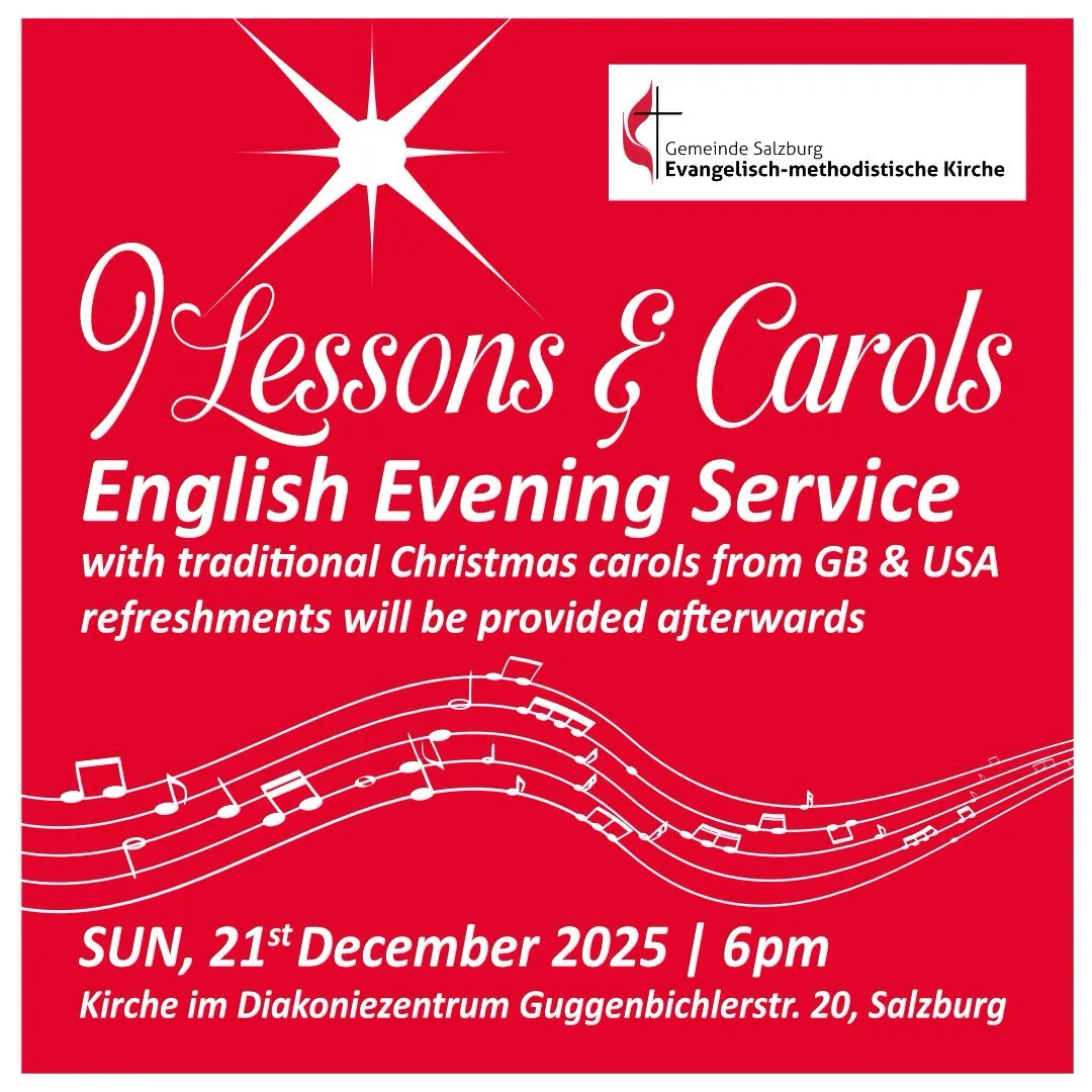 Gemeinsam mit der Salzburg International Christian Church laden wir zum englischen Gottesdienst ein, der das Format eines typischen "9 Lessons & Carols"-Weihnachtsgottesdienstes hat.
