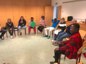 Dann kam James Nyansu aus der Gemeinde Linz vorbei und stellte sich zum Interview zur Verfügung. Er hatte auf jede Frage der Jugendlichen eine passende Antwort und gewährte uns tiefe Einblicke in seinen Glaubens- und Lebensweg.