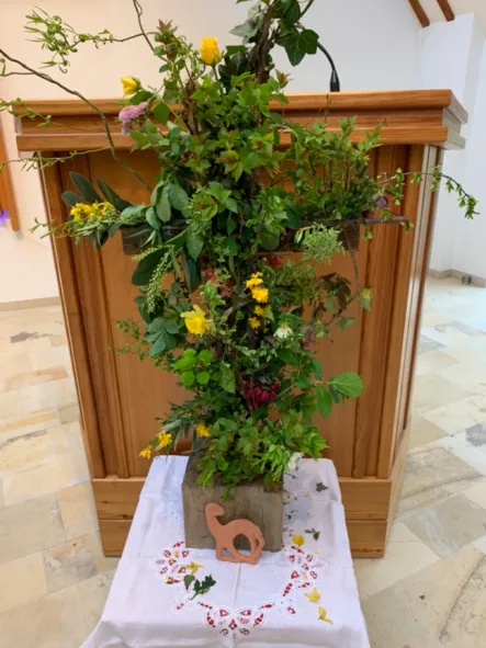 Als Besonderheit wurde das Dornenkreuz dieses Jahr nicht durch Blumenschmuck, sondern durch grüne Zweige "lebendig" gemacht.