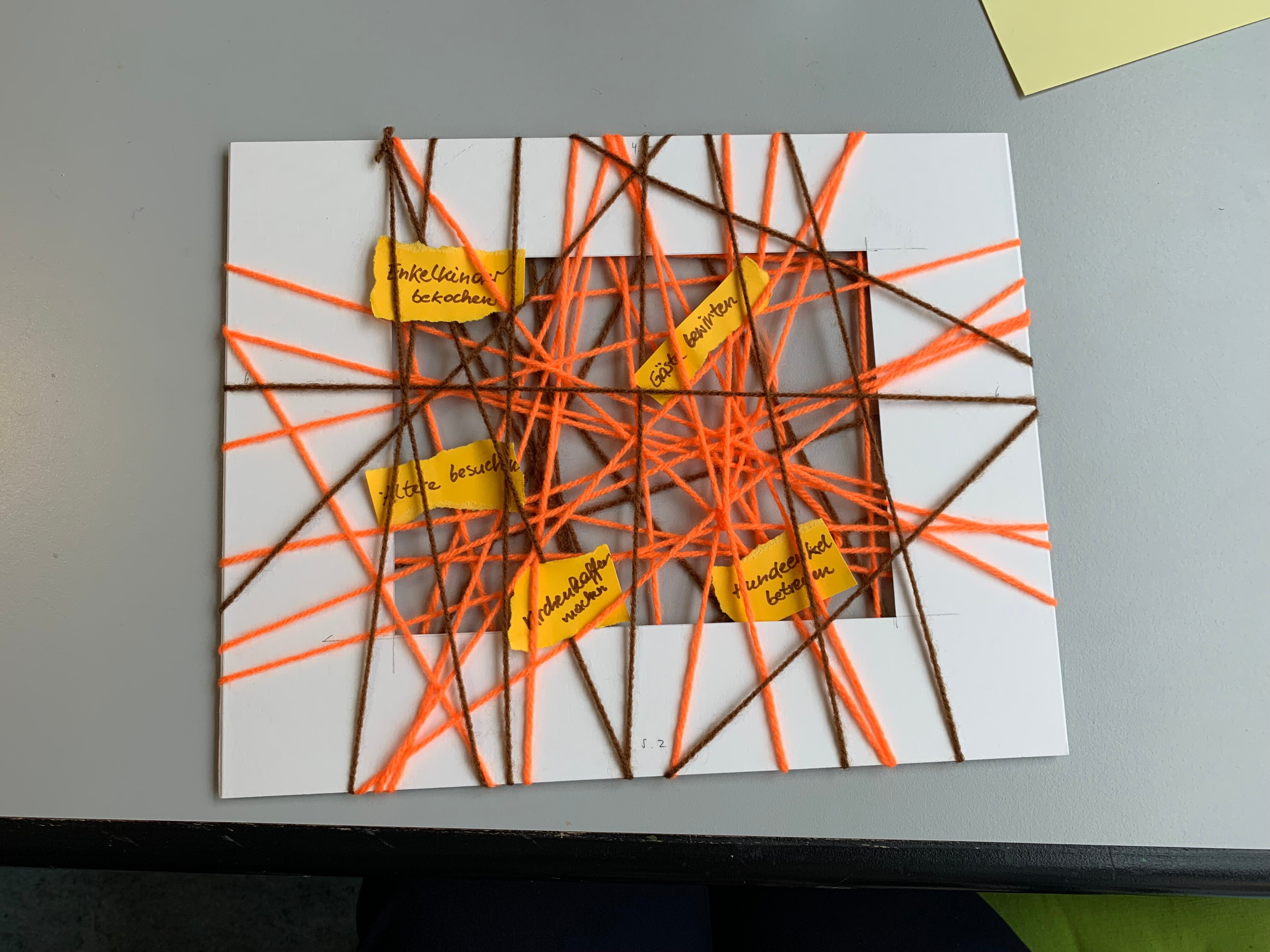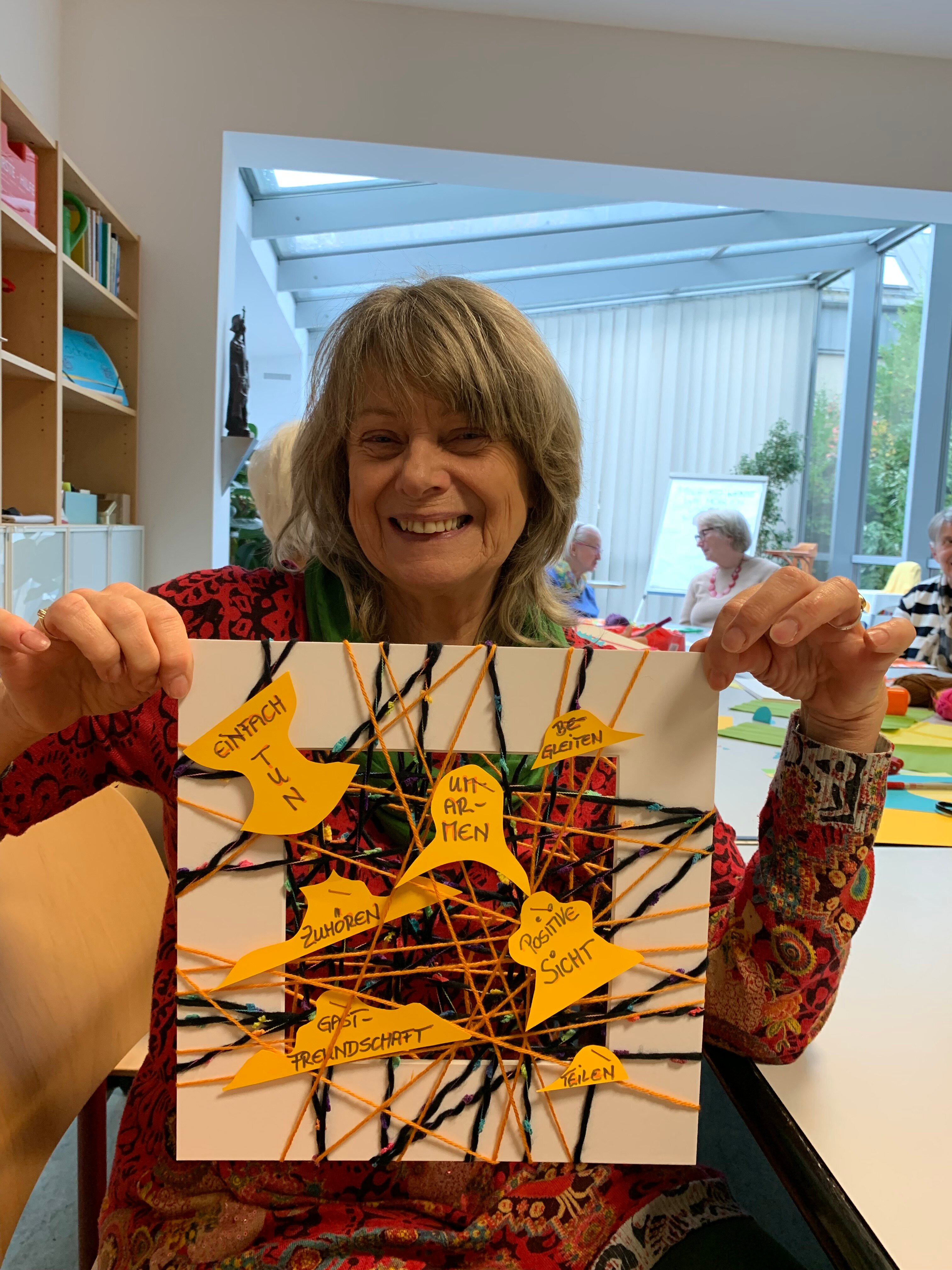Am Nachmittag haben die Frauen ihr Wirken in Werke umgesetzt. Mit Karton, Wolle und Papier wurde das in Gesprächen Entfaltete festgehalten, zur Erinnerung und Stärkung für Zeiten der Mutlosigkeit, wenn man gerade einmal nicht das Gefühl hat, etwas bewirken zu können.