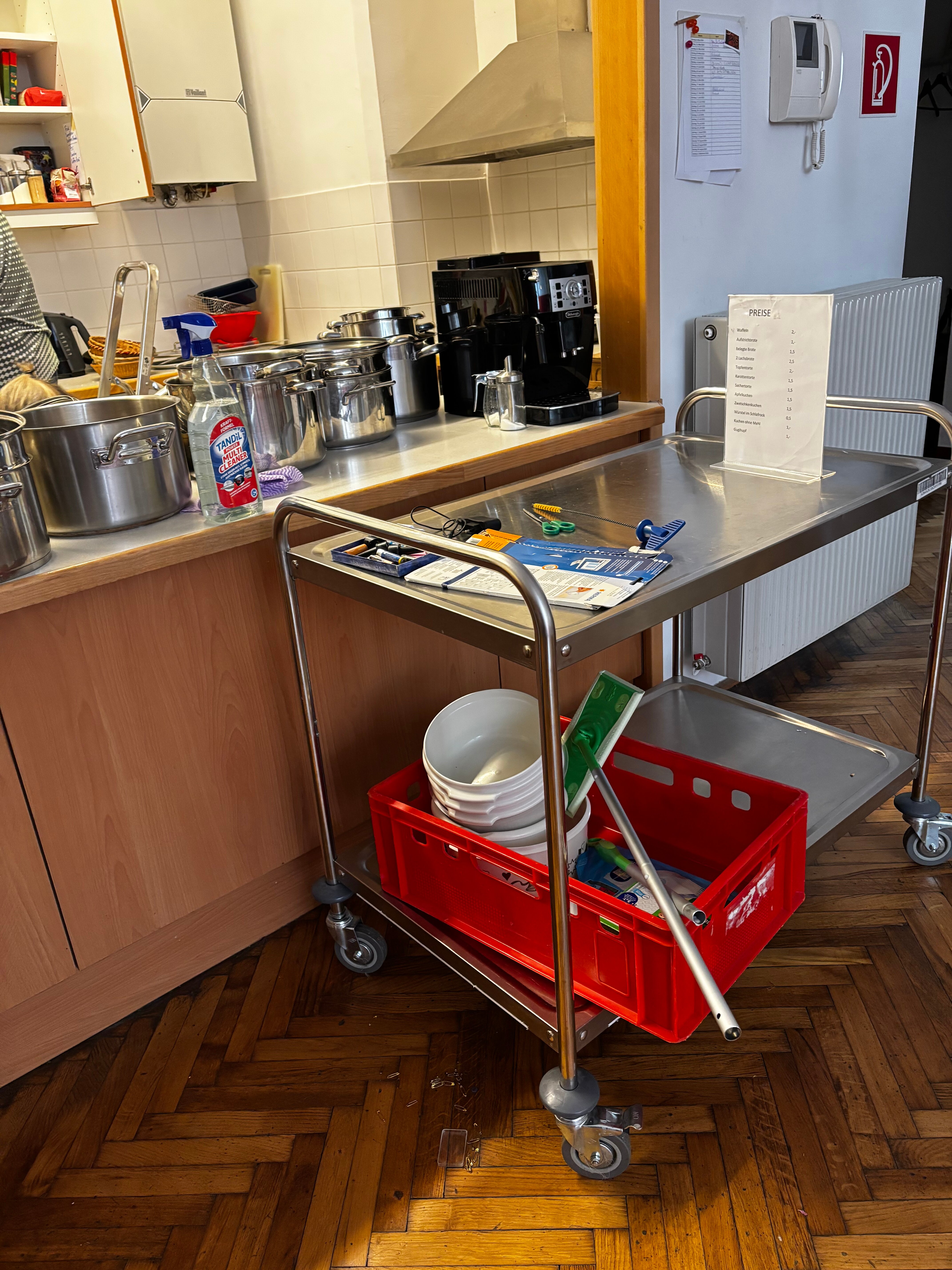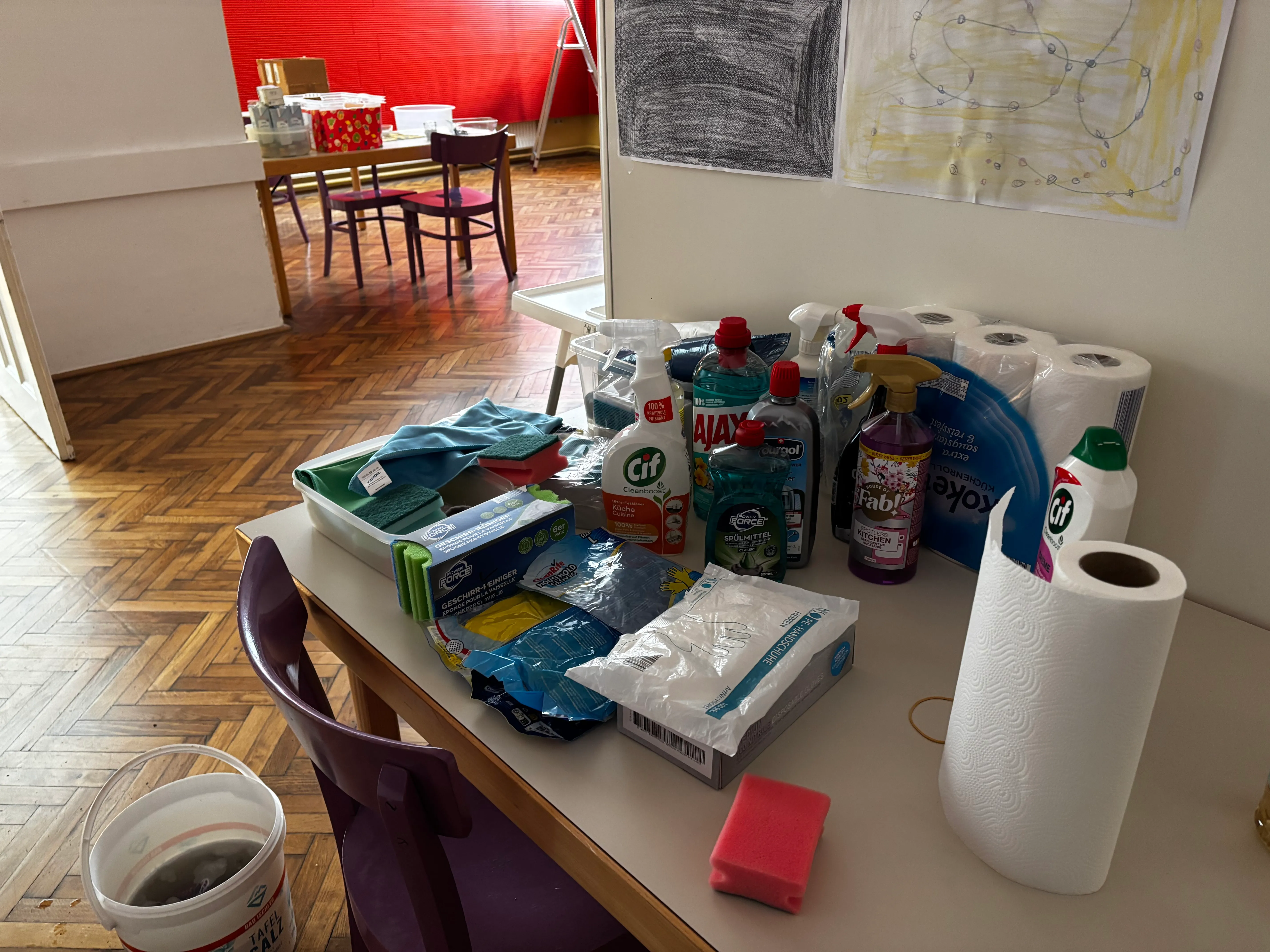 Nach der Wärmestubensaison haben sich am 25. April einen Nachmittag lange einige fleißige Menschen in unseren oberen Gemeinderäumen zusammengefunden, um aufzuräumen und sauber zu machen. Genügend Arbeitsmaterialien hat uns Jutta bereitgestellt. Genügend zum Wegwerfen und genügend Staub zum Wegwischen gab es von selbst... Und so haben wir uns tatkräftig ans Werk gemacht. Jetzt haben wir für etliches wieder genug (Stau-) Raum, viele saubere Flächen und Schränke und nicht zuletzt einen Überblick über das, was wir zukünftig noch ein bisschen besser in Ordnung halten wollen.