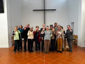 Was noch nicht reicht auf dieser Welt ist der Frieden. Unseren Wunsch, unsere Bitten darum, haben wir an einem Dienstagvormittag vor Gott gebracht – und uns den Frieden gegenseitig geschenkt (danke an R. für den Anstoß dazu!). Was Gott sei Dank immer da ist zum Weitergeben: Der Segen Gottes. Davon ist genug für alle da! In diesem Vertrauen haben wir in dieser Saison Menschen im Namen Gottes gesegnet. Mit der Hilfe von Öl und einem Tuch. Oder sogar, wie heute am Faschingsdienstag, mit Luftschlangen. Auch die Freude ist schließlich eine Geistesgabe (Galater 5,22)!