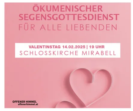 In der Schlosskirche Mirabell in Salzburg werden am 14.2. (anlässlich des Tag des Hl. Valentin) Liebende aller Art in einem ökumenischen Gottesdienst gesegnet.