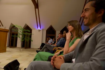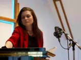 Während die meisten Konzertbesucher*innen einmal die Bar und das Buffet aufsuchten, begannen einige Schülerinnen eine spontane Jamsession auf dem Kirchenboden zu veranstalten.