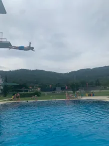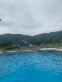 While Simona, Laze and Christoph were walking from one church to the next, Emanuela, Jonatan, Luka and Frank went to the swimming pool "Auster" in Eggenberg.