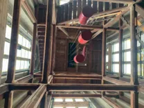 Christoph had procured the keys and so we were able to experience a great adventure: Through narrow spiral staircases up to the church roof, there over footbridges to the tower, further over exposed stairs to the platform and then with a 25 meter ladder to the final point.