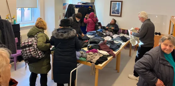 And we invite you to support our new year-round Begegnungsstube (“A Meeting Place”). Every last Tuesday of the month, visitors will be welcomed with refreshments, and will have the opportunity to play board games, engage in community activities, participate in language learning, and enjoy extended conversation and fellowship. Volunteers from ESUMC and the Fünfhaus Gemeinde will staff the Begegnungsstube, and all are welcome to serve. The first Begegnungsstube was held on Tuesday 25 March, and about 10 neighbors and volunteers enjoyed a time of conversation, refreshments, and games. We are grateful to be able to open the doors of our church to meet the needs of our community not only in the winter, but around the year.